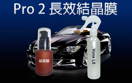 Pro2: 功能特性: 1.完全密封漆面保護層, 高效持久的保護車漆 2.有效對抗環境中對車漆的損壞(溫度, 紫外線, 酸雨, 沙塵) 3.強力播水性, 施工後更易清洗照顧 4.特殊鍍晶成分, 提升車漆亮度, 折光率加強 5.維護過程簡易操作, 隨時保持光亮如新
