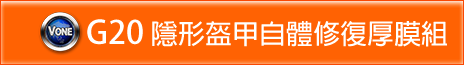 G20 功能特性: 1.長效持久的軟性護膜, 期間長達半年之久 2.表面光滑晶亮, 如同全車重新烤漆護膜 3.全車護膜, 厚度明顯, 隨手可測, 不在若有似無, 實在價值呈現 4.不懼刮傷護膜表面, 未傷及底漆刮痕, 可自行恢復 5.完全撥水功能, 使車漆不易沾附灰塵, 照料清理異常輕鬆 6.落實保養維護, 愛車能全年光亮如新
