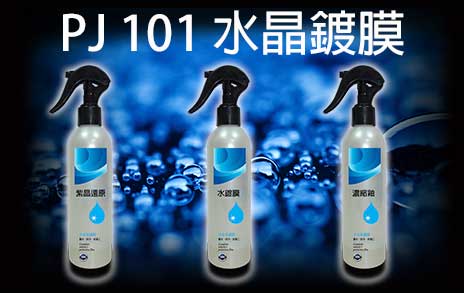 PJ 101: 功能特性: 1.快速簡易鍍膜施工, 大幅縮短施工時間 2.全車鍍膜保護, 不需特別做遮蔽操作 3.全車鍍膜後, 播水效果強, 並且平整亮麗光滑 4.長時強效, 達到防汙抗酸雨, 耐腐蝕耐高溫, 耐洗刷功效 5.光滑柔亮不易沾覆灰塵
