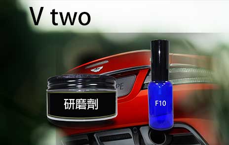 V-two: 功能特性: 1.特殊水性強力油膜清洗劑, 能將玻璃上殘留髒汙一次清除 2.對付酸雨痕跡一樣有效 3.施工後, 玻璃光亮如新, 並覆有鍍膜, 即不易沾覆水滴, 是雨天最實用工具 4.施工後, 玻璃耐刮刷, 並不怕含油汙水沾覆, 確保行車安全